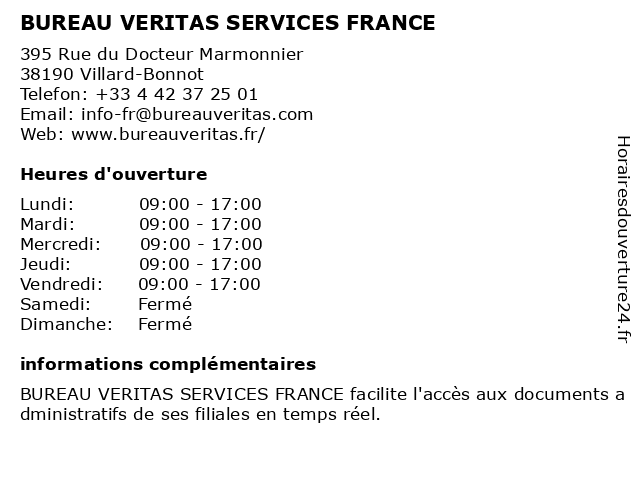 1 BUREAU VERITAS CONSTRUCTION (Distance: 0,00 km) 395 Rue du Docteur Marmonnier, 38190 Villard-Bonnot bureau, construction, veritas 4 BUREAU VERITAS FORMATION (Distance: 0,43 km) Rue docteur marmonnier bat. techniparc, 38190 VILLARD-BONNOT bureau, formation, veritas 5 Bureau Veritas Construction (Distance: 4,39 km) 405 Rue Lavoisier, 38330 Montbonnot-Saint-Martin bureau, construction, veritas 6 Cimetière du Grand-Sablon - bureau des concessions (Distance: 9,76 km) - Avenue du grand sablon, 38700 La Tronche arbre, bureau, cimetiere, cimetière, concessions, des, du, espace vert, forêt, funeraire, grand, jardin, loisirs, nature, parc, prairie, sablon, square |