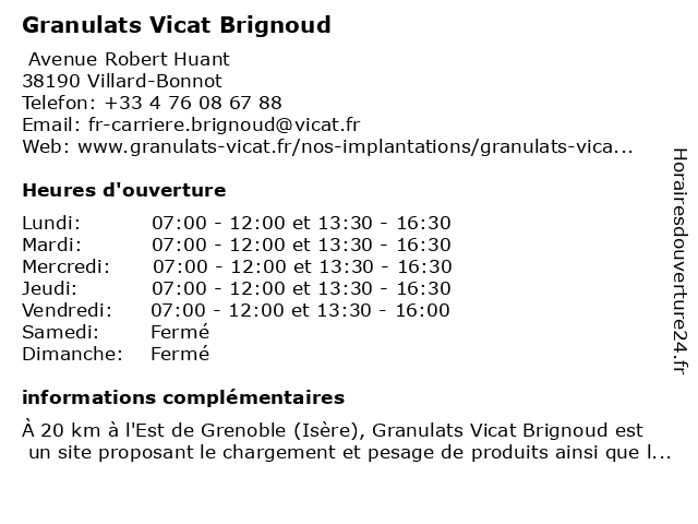 1 A+GLASS BRIGNOUD (Distance: 0,45 km) 10 Avenue de la Chantourne, 38190 Villard-Bonnot a+glass, aplusglass, automobile, brignoud, bris de glace, camion, centres a+glass, eclairage, france, pare-brise, parebrise 2 Eurofins - Laboratoire d'analyses médicales Brignoud (Distance: 1,04 km) 34 Bis Boulevard de la Libération, 38190 Villard-Bonnot brignoud, d'analyses, eurofins, laboratoire, médicales 3 Béton VICAT - VILLARD BONNOT (Distance: 2,51 km) Rue des Eaux Claires, 38190 Villard-Bonnot bonnot, béton, vicat, villard 4 Béton VICAT - St MARTIN D'HERES (Distance: 13,17 km) 16 Rue Barnave, 38400 Saint-Martin-d'Hères béton, d'heres, martin, st, vicat 5 Granulats Vicat Pontcharra (Distance: 21,27 km) 193 Rue de la Dragueline, 38530 Pontcharra granulats, pontcharra, vicat 6 Granulats Vicat Chapareillan (Distance: 23,07 km) RN90 Route du Grésivaudan, 38530 Chapareillan chapareillan, granulats, vicat |