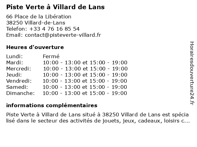 | Dimanche | 10:00-13:00 et 15:00-19:00 |