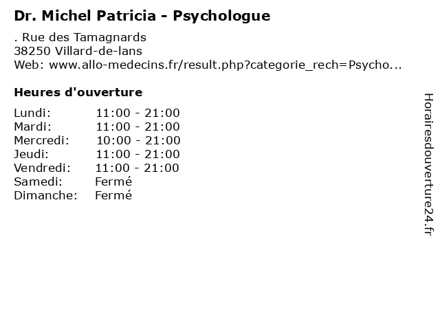 Termes de recherche pour Dr. Michel Patricia - Psychologue:michel, santé, patricia, docteur, dr., médecins, psychologue |