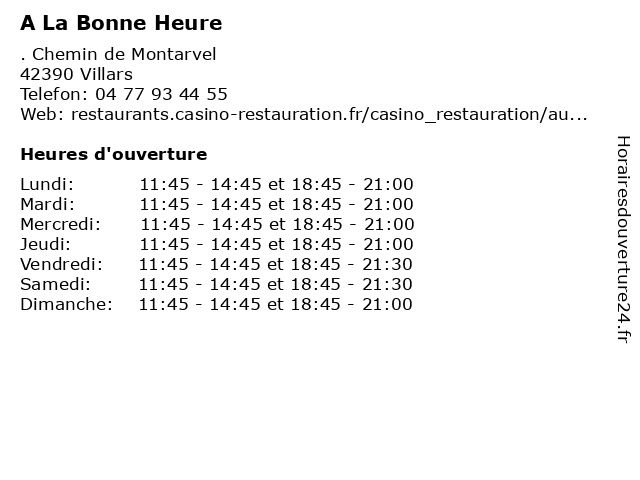 | Mercredi | 11:45-14:45 et 18:45-21:00 |