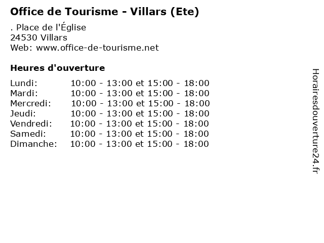 1 Office de Tourisme - Villars (Hiver) (Distance: 0,01 km) . Place de l'Église, 24530 Villars bureaux, de, ete, hiver, office, services, tourisme, villars 2 Office de Tourisme de Saint Jean de Côle (Distance: 6,60 km) - Rue du Château, 24800 Saint Jean de Côle côle, de, information, jean, office, renseignement, saint, tourisme, touristique 3 Office de Tourisme de Thiviers (Distance: 13,00 km) 8 Place Foch, 24800 Thiviers de, information, office, renseignement, thiviers, tourisme, touristique 4 Office de Tourisme - Nontron (Sept au Juin) (Distance: 13,90 km) 3 Avenue du Général Leclerc, 24300 Nontron au, bureaux, de, juin, nontron, office, sept, services, tourisme 5 Office de Tourisme - Nontron (Juillet au Aout) (Distance: 13,90 km) 3 Avenue du Général Leclerc, 24300 Nontron aout, au, bureaux, de, juillet, nontron, office, services, tourisme 6 Croix-Rouge Française (Bureaux) (Distance: 44,29 km) 4 Rue Champlain, 87800 Nexon aide, bureaux, creche, croix, française, prévention, rouge, rééducation, santé, services |