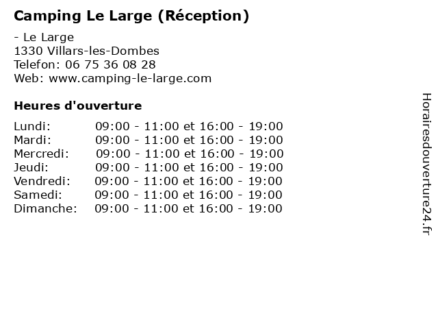 | Samedi | 09:00-11:00 et 16:00-19:00 |