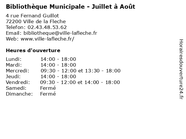| Mercredi | 09:30-12:00 et 13:30-18:00 |