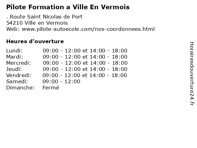 | Mercredi | 09:00-12:00 et 14:00-18:00 |