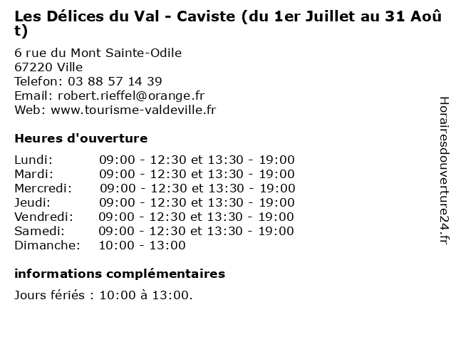 | Samedi | 09:00-12:30 et 13:30-19:00 |