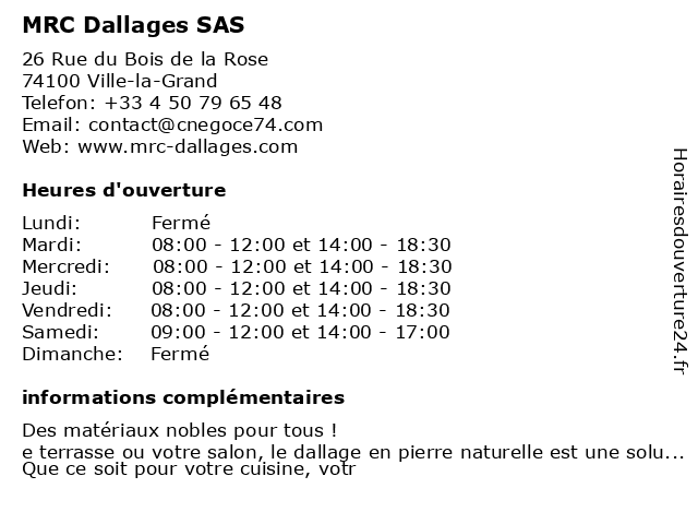 | Mardi | 08:00-12:00 et 14:00-18:30 |