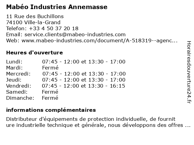 | Lundi | 07:45-12:00 et 13:30-17:00 |