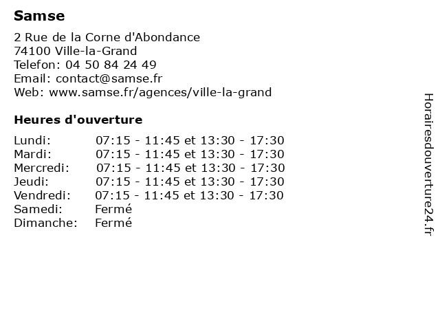 | Lundi | 07:15-11:45 et 13:30-17:30 |