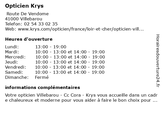 1 Opticien Krys (Distance: 2,18 km) 13 Rue Du Bout Des Haies, 41000 Blois krys, magasin de lentilles correctrices, magasin de lunettes de soleil, magasin d’accessoires de mode, opticien, optométrie 2 Opticien Krys (Distance: 4,77 km) 6/8 Rue Des 3 Clefs, 41000 Blois krys, magasin de lentilles correctrices, magasin de lunettes de soleil, magasin d’accessoires de mode, opticien, optométrie 3 Opticien Krys (Distance: 7,96 km) 99 Rue Pierre Gilles De Gennes, 41350 Vineuil krys, magasin de lentilles correctrices, magasin de lunettes de soleil, magasin d’accessoires de mode, opticien, optométrie 4 Opticien Krys (Distance: 17,31 km) 53 Rue Nationale, 41500 Mer krys, magasin de lentilles correctrices, magasin de lunettes de soleil, magasin d’accessoires de mode, opticien, optométrie 5 Lissac l'Opticien Villebarou (Distance: 0,13 km) 1 Route de Vendôme, 41000 Villebarou l'opticien, lentilles de contact, lissac, lunettes de soleil, lunettes de vue, opticien, opticien lissac, villebarou 6 Opticien Direct Optic (Distance: 2,88 km) C.c. chavy, 41000 Blois direct, magasin de lunettes de soleil, optic, opticien, optométrie |