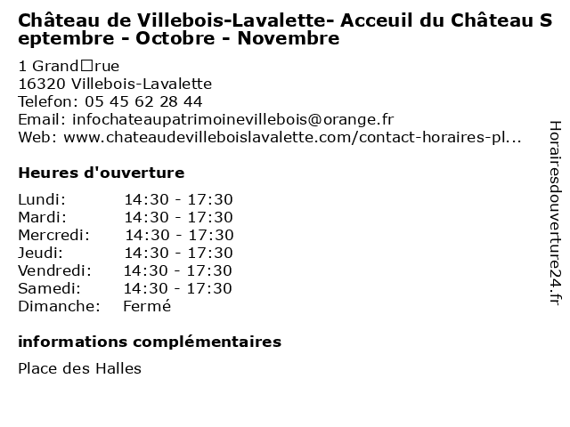 Termes de recherche pour Château de Villebois-Lavalette- Acceuil du Château Septembre - Octobre - Novembre:du, de, chateau, septembre, octobre, novembre, lavalette, histoires, acceuil, villebois, ouverture, visites, guides, chateau villeboislavalette |
