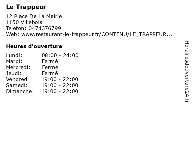 Termes de recherche pour Le Trappeur:restaurant, le, alimentation, brasserie, terrasse, parking, trappeur |