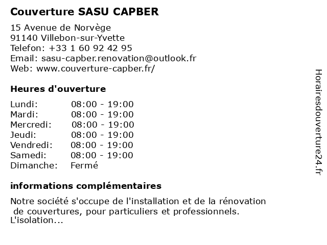 | Samedi | 08:00-19:00 |