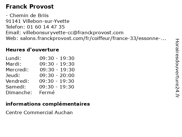 1 Franck Provost (Distance: 3,15 km) 79 Rue du Président François Mitterrand, 91160 Longjumeau expertise beauté, franck, la marque, provost, tendance coiffure, événement 2 Franck Provost (Distance: 4,99 km) 27 Rue de Paris, 91400 Orsay coiffeur, coiffure, franck, provost, salon 3 Franck Provost (Distance: 5,74 km) 6 Place Des Pres Hauts, 91370 Verrieres le Buisson expertise beauté, franck, la marque, provost, tendance coiffure, événement 4 Franck Provost (Distance: 8,28 km) 122 Avenue Gabriel Peri, 91700 Sainte Genevieve Des Bois expertise beauté, franck, la marque, provost, tendance coiffure, événement 5 Franck Provost (Distance: 8,49 km) 147 Rue Houdan, 92330 Sceaux expertise beauté, franck, la marque, provost, tendance coiffure, événement 6 Franck Provost (Distance: 8,50 km) 4 Grande Rue, 92350 Le Plessis Robinson expertise beauté, franck, la marque, provost, tendance coiffure, événement |