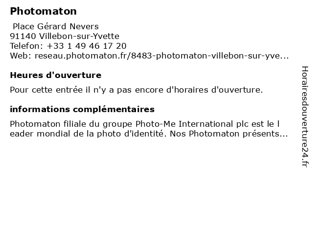 1 Photomaton (Distance: 0,91 km)35 Avenue du Général de Gaulle, 91140 Villebon-sur-Yvette photomaton