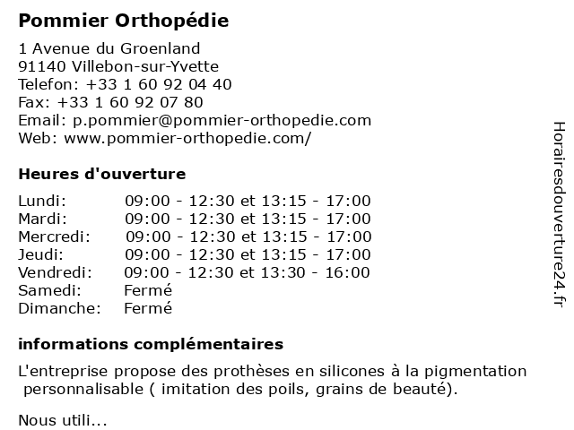 1 Espace Orthopédie Palaiseau (Distance: 4,71 km) 75 Rue de Paris, 91120 Palaiseau espace, fabrication corset, matériel orthopédique, médical, orthopédie, orthèses sur mesure, palaiseau, semelles 2 Montenvert Orthopédie (Distance: 9,15 km) 17 Rue Georges Besse, 92160 Antony appareillage, matériel, montenvert, médical, orthopédie, prothèse, santé 3 Orthopédie 91 - Cabinet médical (Distance: 9,85 km) 114 Avenue Gabriel Péri, 91700 Sainte-Geneviève-des-Bois 91, cabinet, docteurs, medecins, medical, médical, orthopédie 4 Pharmacie Orthopédie & Optique de St-Rémy (Distance: 10,04 km) 9 Rue de la République, 78470 Saint-Rémy-Lès-Chevreuse conseils, de, homéopathie, médicaments, optique, orthopédie, pharmacie, rémy, st 5 ISO Implants Service Orthopédie (Distance: 15,98 km) 1 Rue Jules Guesde, 91130 Ris-Orangis distribution, fabrication, implants, iso, matériels, orthopédie, orthopédiques, ris-orangis, santé, service 6 BR Orthopédie (Distance: 16,43 km) 21 rue des 4 cheminées, 92100 Boulogne – Billancourt br, matériel médical, orthopédie, orthopédiste |