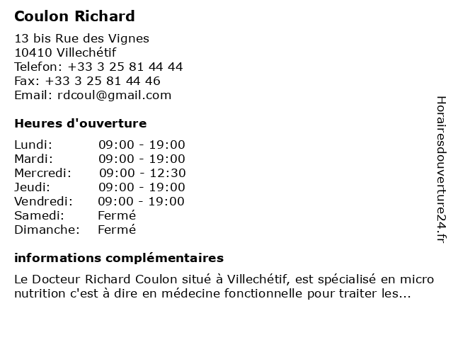 | Lundi | 09:00-19:00 |
