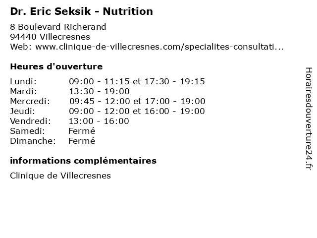 | Mercredi | 09:45-12:00 et 17:00-19:00 |