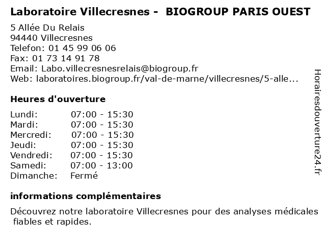 Termes de recherche pour Laboratoire Villecresnes - BIOGROUP PARIS OUEST:paris, laboratoire, ouest, villecresnes, biogroup, dépistages, laboratoire de diagnostic |