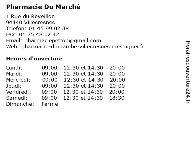 | Mardi | 09:00-12:30 et 14:30-20:00 |