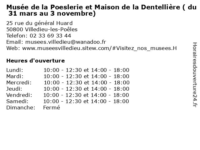 | Mardi | 10:00-12:30 et 14:00-18:00 |