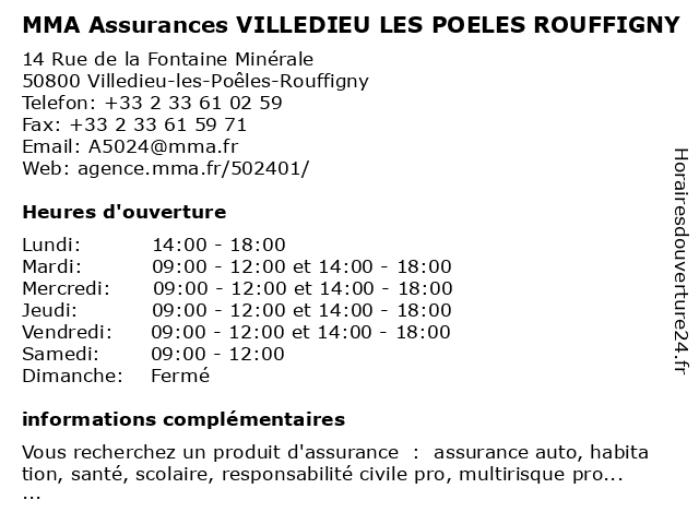 | Mardi | 09:00-12:00 et 14:00-18:00 |