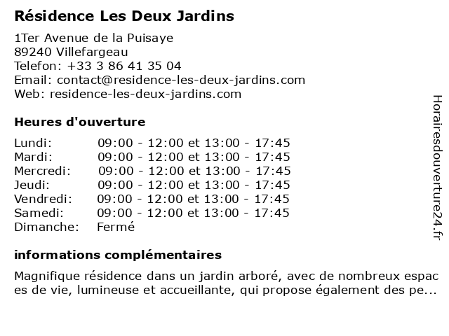 | Mercredi | 09:00-12:00 et 13:00-17:45 |