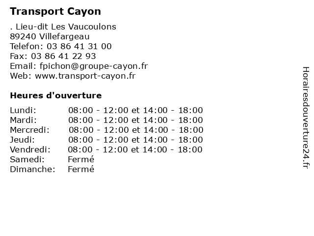 Lundi | 08:00-12:00 et 14:00-18:00 |