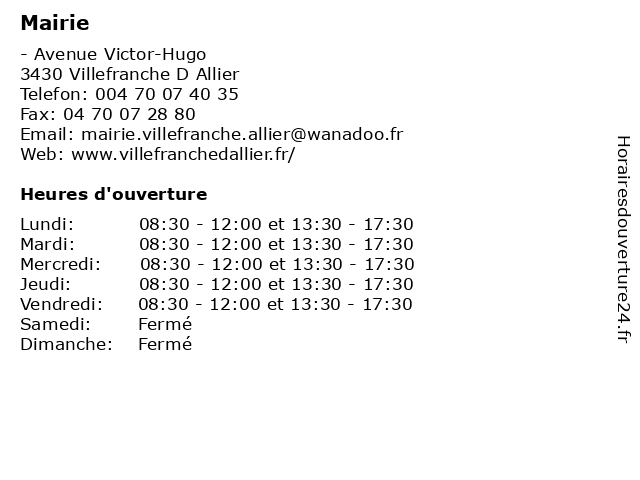 Lundi | 08:30-12:00 et 13:30-17:30 |