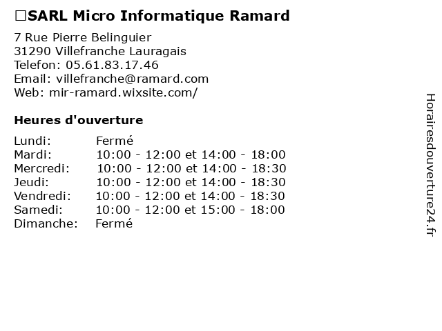 | Mercredi | 10:00-12:00 et 14:00-18:30 |