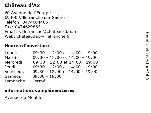 | Mardi | 09:30-12:00 et 14:00-19:00 |