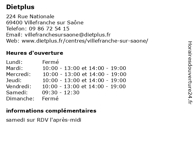 | Jeudi | 10:00-13:00 et 14:00-19:00 |