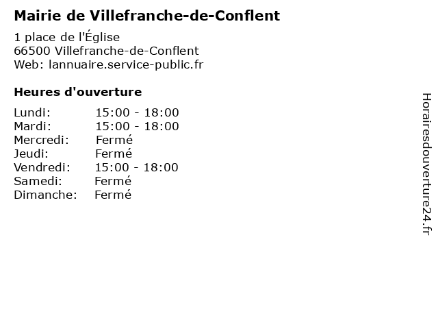 | Samedi | Fermé |