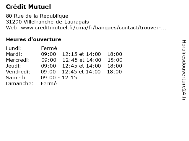 | Mardi | 09:00-12:15 et 14:00-18:00 |