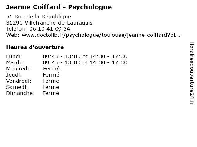 | Mardi | 09:45-13:00 et 14:30-17:30 |
