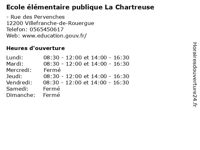 | Mardi | 08:30-12:00 et 14:00-16:30 |