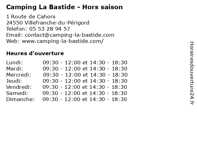 | Mardi | 09:30-12:00 et 14:30-18:30 |
