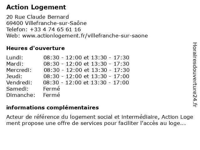 1 Agence Départementale d'Information sur le Logement (ADIL) (Distance: 0,01 km) 20 Rue Claude-Bernard, 69400 Villefranche-sur-Saône adil, administration, agence, assoc, d'information, départementale, le, logement, services, services publics, sur 2 Centre Communal d'Action Sociale (CCAS) (Distance: 0,49 km) 162 rue Paul Bert, 69653 Villefranche-sur-Saône aides, ccas, centre, communal, d'action, logement, personnes âgées, prévention santé, sociale 3 Action Villefranche sur Saone (Distance: 1,31 km) 240 Rue François Meunier Vial, 69400 Villefranche-sur-Saône action, animaux domestiques, articles de sport, articles ménagers, boissons & alimentation, bricolage, cuisine, habitat, hobby, hygiène & beauté, jardin, jouets, mode, multimédia, papeterie & bureau, saone, sur, villefranche, voyages 4 Orient'Action (Distance: 12,54 km) 16 Rue du Bois Baron, 69220 Belleville-en-Beaujolais bilans, compétences, orient'action, professionnel, recrutement 5 Orient'Action (Distance: 12,74 km) 2 Rue de la Blanchisserie, 69220 Belleville-en-Beaujolais bilans, compétences, orient'action, professionnel, recrutement 6 Centre Communal d'Action Sociale - CCAS (Distance: 13,82 km) 1 Place Bayère, 69570 Dardilly action, ccas, centre, communal, d'action, sociale |