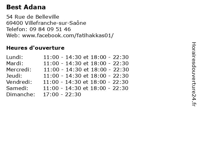 | Lundi | 11:00-14:30 et 18:00-22:30 |