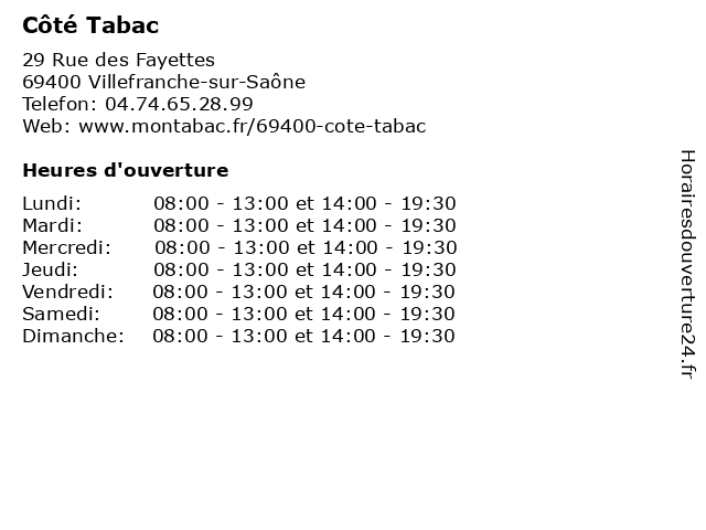 | Lundi | 08:00-13:00 et 14:00-19:30 |