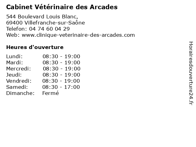 1 Cabinet Vétérinaire des Arcades (Distance: 10,96 km) 11 Place de l'Église,, 01090 Montmerle-sur-Saône animal, arcades, cabinet, clinic, des, veterinarian, vétérinaire 2 Clinique Vétérinaire des Arcades (Distance: 0,02 km) 544 Boulevard Louis Blanc, 69400 Villefranche -Sur-Saône arcades, chats, chien, clinique, des, santé, soin, vaccin, vétérinaire 3 Cabinet Dentaire - Dentiste (Distance: 0,20 km) 309 Rue Victor Hugo, 69400 Villefranche-sur-Saône cabinet, dentaire, dentiste, docteur, medecins, sante 4 Cabinet de Recrutement Manpower de Villefranche (Distance: 0,39 km) 149 Avenue du Promenoir, 69400 Villefranche-sur-Saône agence de recrutement, agence intérim, agence pour l'emploi, cabinet, cabinet de recrutement, cdi, de, intérim, manpower, recrutement, villefranche 5 Cabinet Chiropratique Petit-Rey (Distance: 1,14 km) 226 Rue de l'Écossais, 69400 Limas articulation, cabinet, chiropratique, douleurs, petit, rey, santé 6 Cabinet Chiropratique Rey-Petit (Distance: 1,15 km) 226 Rue de l'Écossais, 69400 Limas cabinet, chiropracteur, chiropratique, colonne vertébrale, douleur, petit, rey |