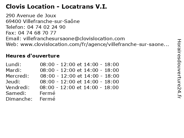1 CLOVIS Villefranche-sur-Saône (Distance: 0,05 km) 290 Avenue de Joux, 69657 Villefranche-sur-Saone clovis, saône, sur, villefranche 2 Mingat location (Distance: 1,44 km) 780 Avenue de l'europe, 69400 Villefranche sur saone location, mingat, villefranche sur saone 3 Rest'Ho Location (Distance: 1,74 km) 104 Impasse de Chavanne, 69400 Arnas location, location matériel, location mobilier, location vaisselle, rest'ho, évènementiel 4 Carrefour Location Market (Distance: 1,88 km) - Rue Édouard Heriot, 01480 Jassans-Riottier automobiles, carrefour, déménagements, location, market, véhicules 5 Brh Location (Distance: 3,41 km) Moulins 1121 Chemin Des Grands, 69400 Gleize automobiles, brh, location, nra, vente 6 Location Vaisselle (Distance: 7,88 km) - ZA Vaize, 01480 Villeneuve location, location matériel, location mobilier, location vaisselle, vaisselle, villeneuve, évènementiel |