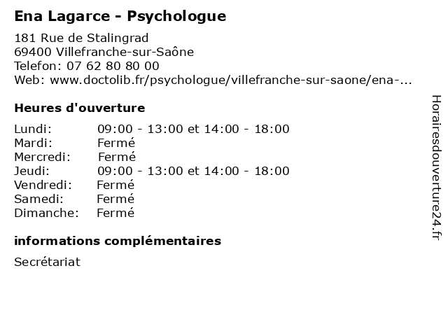 | Samedi | Fermé |