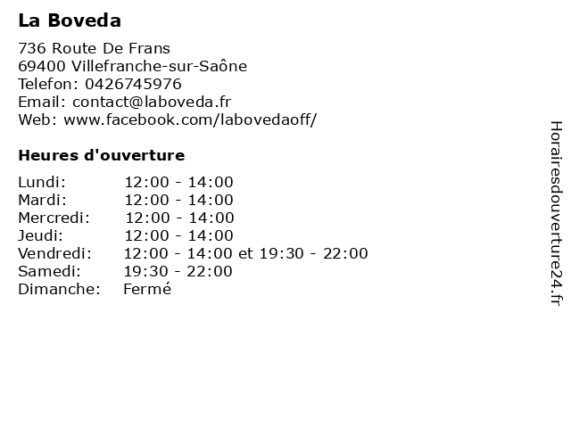 | Vendredi | 12:00-14:00 et 19:30-22:00 |