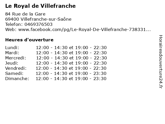 | Samedi | 12:00-14:30 et 19:00-23:30 |