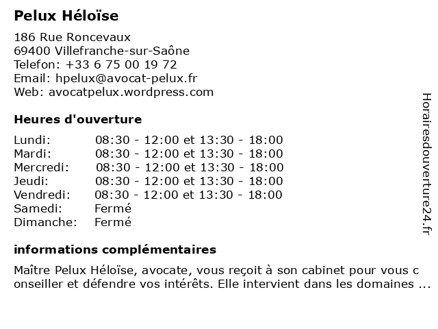 | Lundi | 08:30-12:00 et 13:30-18:00 |