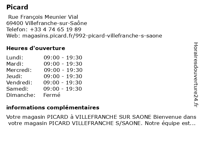 5 Picard (Contactez notre Service) (Distance: 15,38 km) 9 Avenue Carnot, 69250 Neuville Sur Saone contactez, la production française, les fruits, les légumes, notre, picard, produit développé en france, service, société française de produits surgelés, société: en cuisine, un magasin picard 6 Picard (Contactez notre Service) (Distance: 28,15 km) - Rue du Pré Caillat, 01700 Beynost contactez, en cuisine, la production française, les fruits, les légumes, notre, picard, produit développé en france, service, société française de produits surgelés, un magasin picard |