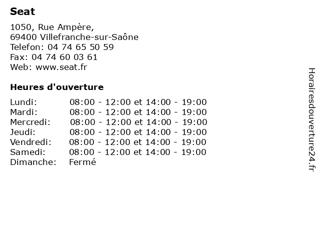 | Samedi | 08:00-12:00 et 14:00-19:00 |