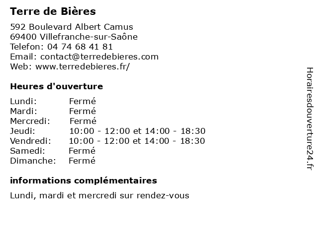 | Vendredi | 10:00-12:00 et 14:00-18:30 |