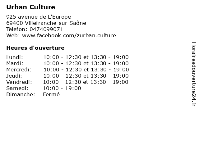 | Lundi | 10:00-12:30 et 13:30-19:00 |